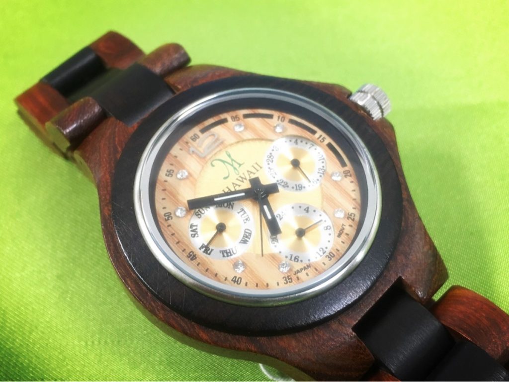 マーティン&マッカーサーはハワイに自生する固有種であるコアのという樹木をケースやベルトの素材として使っている時計でございまして、基本的にハワイでのみ購入が可能な時計でございます。さらに裏ぶたが少々特殊なため、日本国内では電池交換に対応していないお店があるとお聞きしております。当店でございましたらマーティン&マッカーサーの電池交換も対応しております。早速拝見いたします。修理となりますとマーティン&マッカーサーの部品の入手が困難なため、正直なところ難しい場合もございますが、一度ご相談いただければと存じます。
