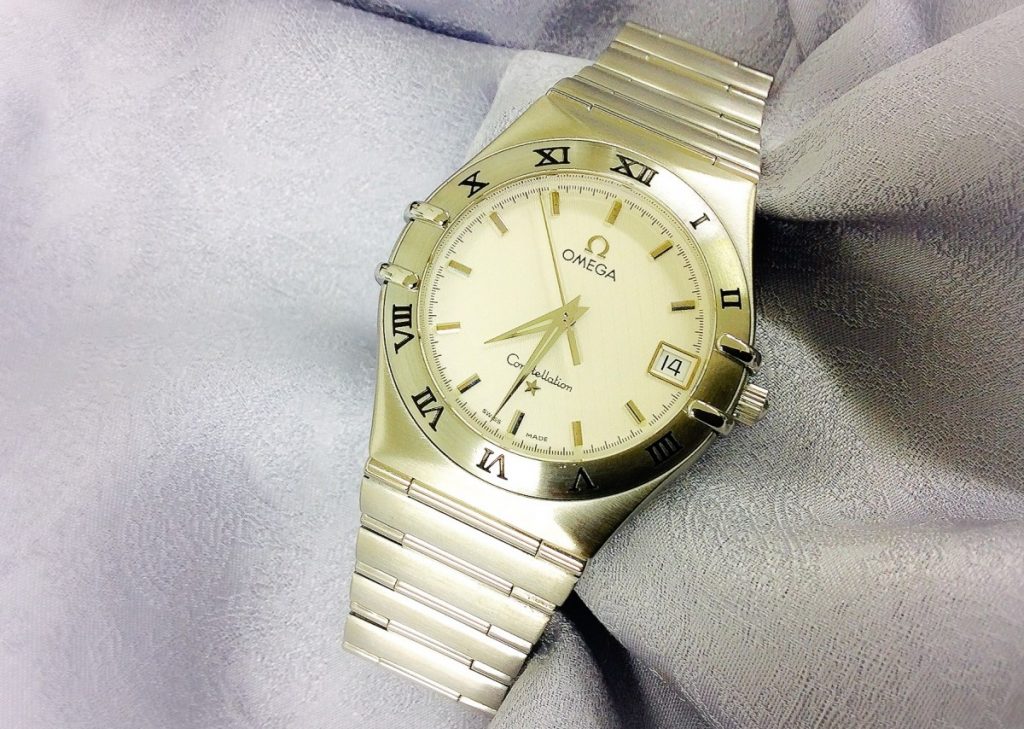 ご郵送にてお預かりしましたのは、コンステレーション SSモデル。3時位置と9時位置のベゼル飾りが特徴的なコンステレーション。すっきりとした美しいデザインで、場所を選ばず、年代問わずお使いいただける、素敵なお時計でございます。