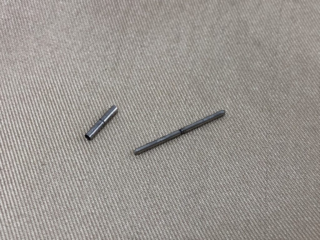 オメガのお時計のベルトのコマの多くは、【ピン】【パイプ】と呼ばれる2つの部品で固定されており、