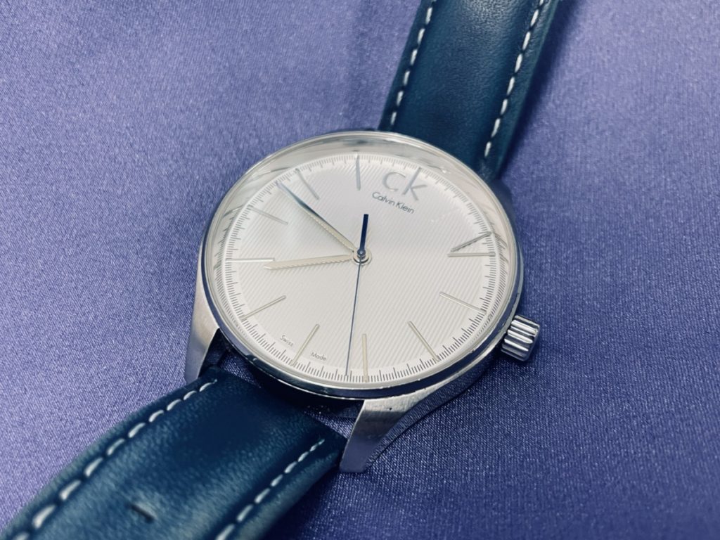 窓口にてお預かりしました、カルバンクラインのお時計でございます。