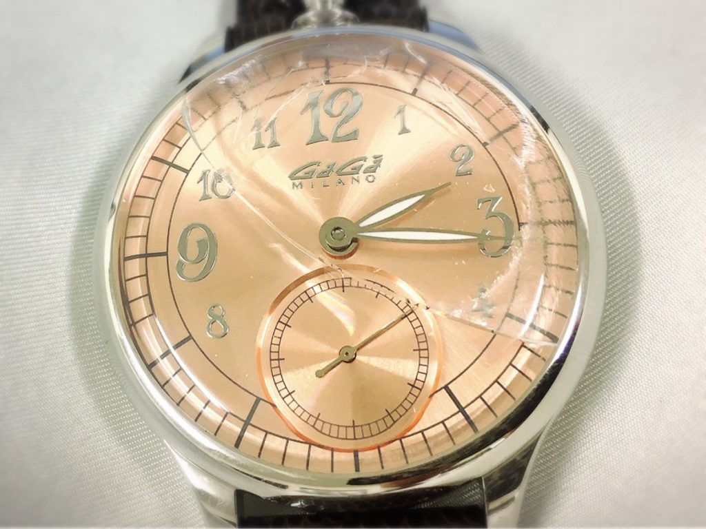 ガガミラノのお時計は、ガラスが大きくまたかなりラウンドした形状をしているモデルが多いため、ぶつけやすく割れやすいお時計となっておりますので、ご使用のお客さまはお気をつけくださいますようお願い申し上げます。