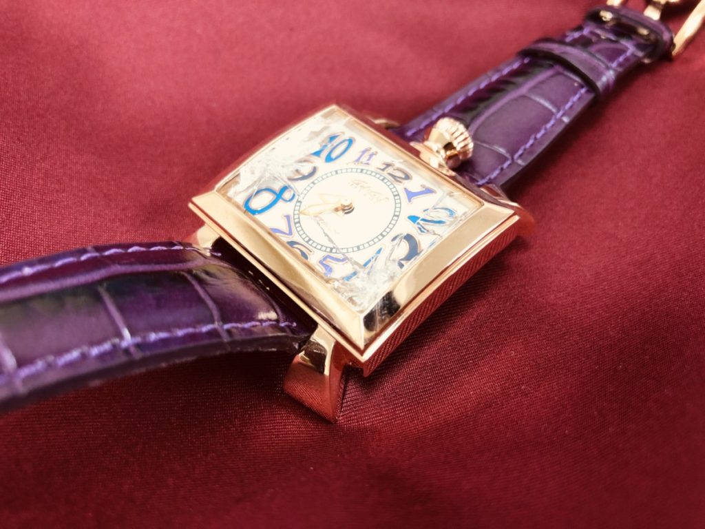 この度お任せいただきました、ガガミラノのお時計はスクエア型のお時計でございます。