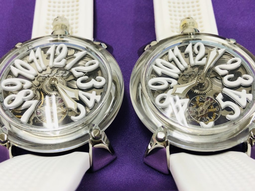 窓口にてお預かりしました、ガガミラノのスケルトンモデルでございます。