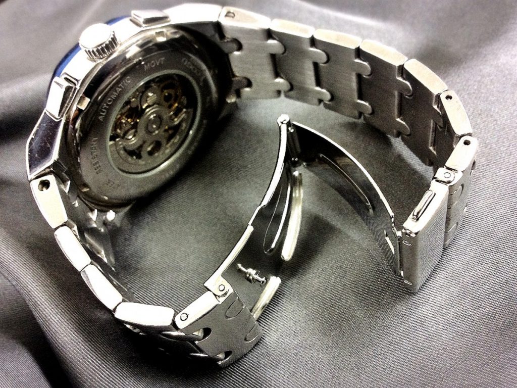 バックルは、内側平面の金属部分の厚みが薄く、衝撃などでゆがんでしまったり、またボタンを押して開閉するタイプは、凸状のボタンへの衝撃などで破損してしまうなどトラブルが起きやすい箇所ではございます。「バックルが留まらなくなってしまった」というのは、比較的多くいただくご相談でございます。