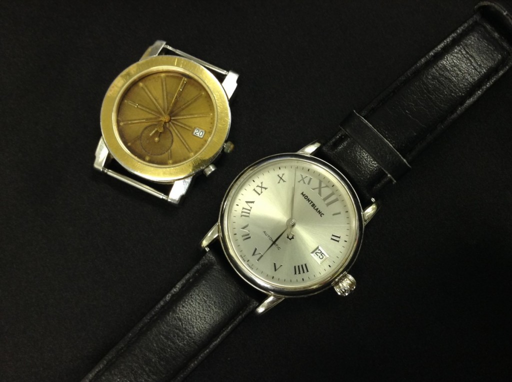 お電話でご相談の後、早速窓口までお時計をお持ち込みくださった名古屋市のL様。窓口で拝見したモンブランのお時計は、たしかに動作が見受けられず、ゼンマイ付近からはかすかな異音が聞こえました。