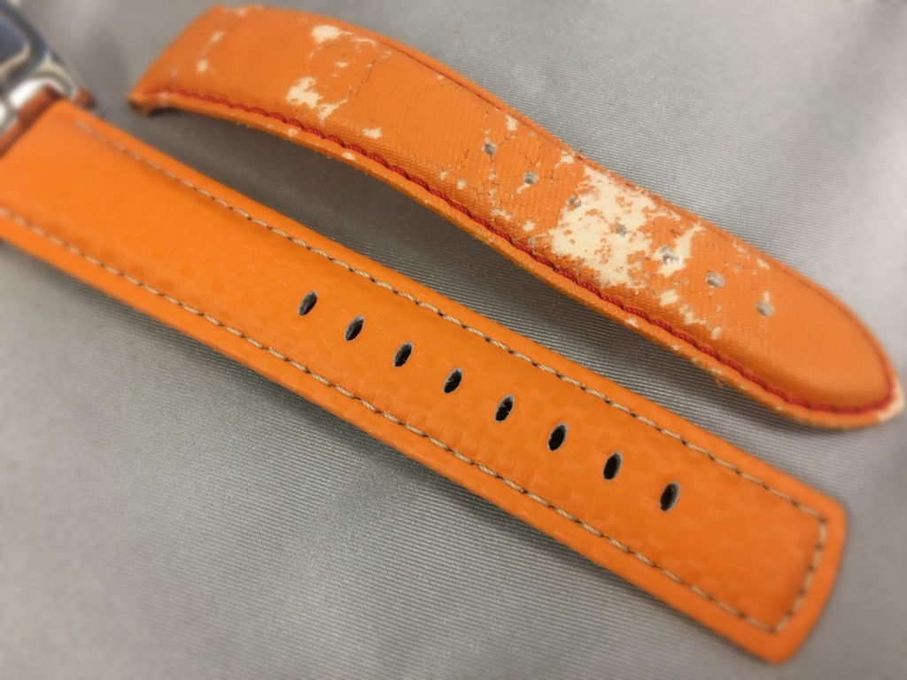 元々ついていたのは鮮やかなオレンジ色の革ベルトでございましが、