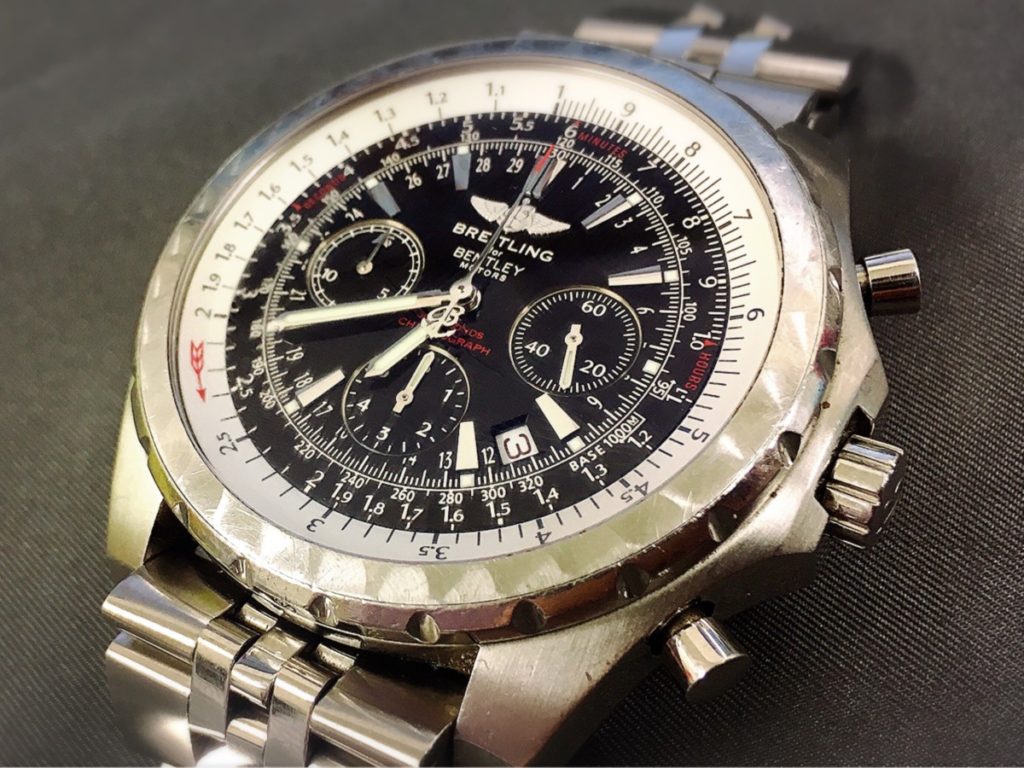 こちらのお時計はブライトリングとイギリスの車メーカーであるベントレーのコラボレーションモデルでございます。