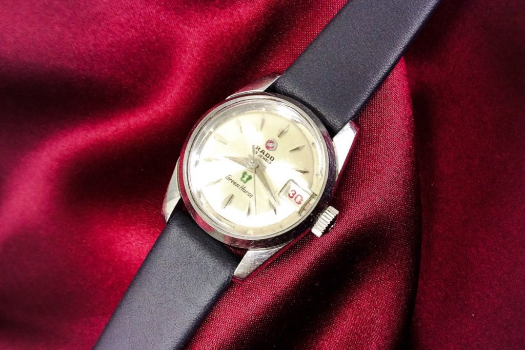 ご郵送にてお預かりしましたのは、グリーンホース、自動巻のレディース・アンティーク。小ぶりで、ころんとしたカーブが特徴的な、可愛らしいお時計でございます。ダイヤ型にカッティングされたインデックスも素敵です。