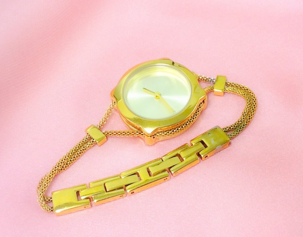 ご郵送にてお預かりしましたのは、GRAMERCY MESHのゴールド。シンプルでユニークながら繊細なデザインで、どのようなシーンにもさりげないジュエリー感がありますお時計でございます。