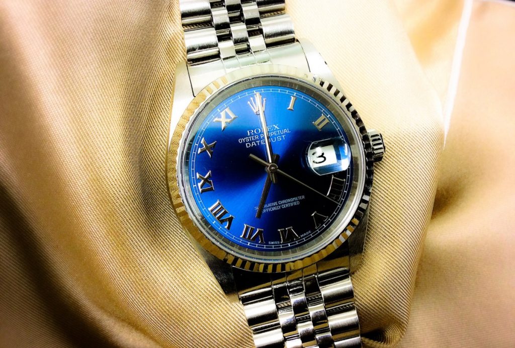 深みのあるロイヤルブルーの文字盤に視認性の良いローマンインデックス。