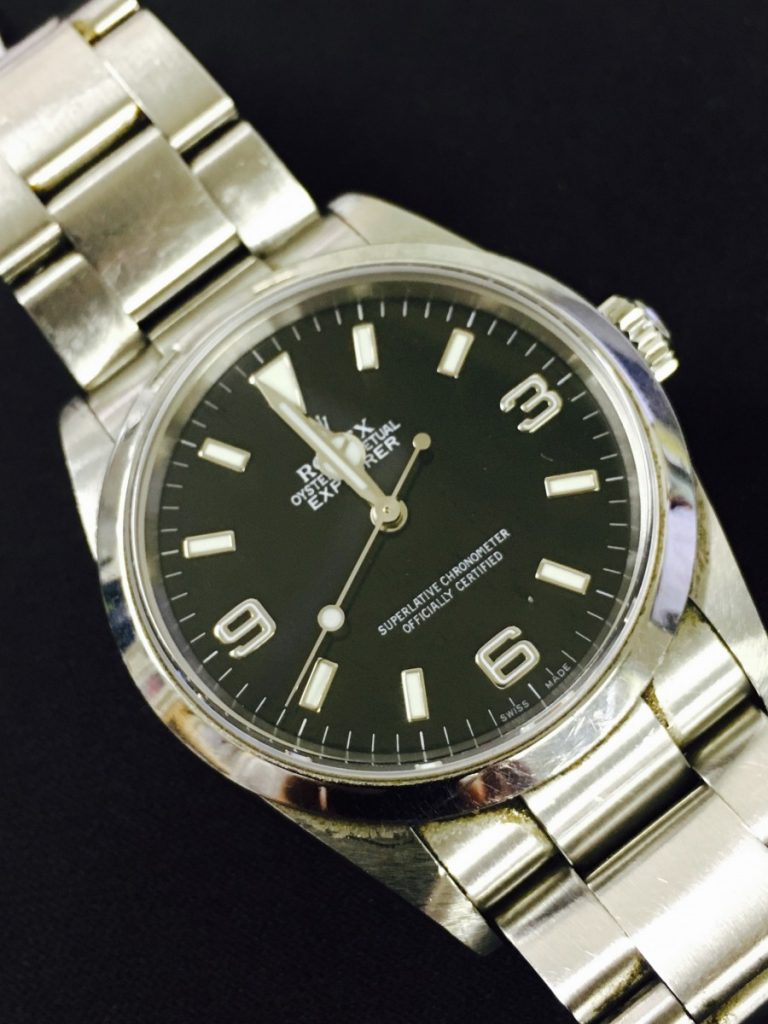 本日ご紹介いたします、ロレックスのエクスプローラーです。午後5時頃窓口にてお預かりいたしました。ご購入から7年ほど休日にご愛用されているお時計とのこと、一ヶ月ほど前にゼンマイを巻き上げ、少し降っても秒針が動かず、動作が停止していることに気がついたそうです。拝見させていただきまして、リューズを回してもゼンマイが巻き上げられず切れているような感触でございました、購入から7年ゼンマイは少々劣化が進んでいる頃かと存じます。M様は当社のホームページをご覧いただき、電話にてご相談を承り、窓口にてお預かりいたしました。お知り合いも青サブマリーナが同じ症状で困っているそうで、治りそうならご紹介していただけるとのこと!いいお時計を寝かしておくのは勿体無いです。是非拝見されていただければと思います。大切なお時計お預けいただきありがとうございます。