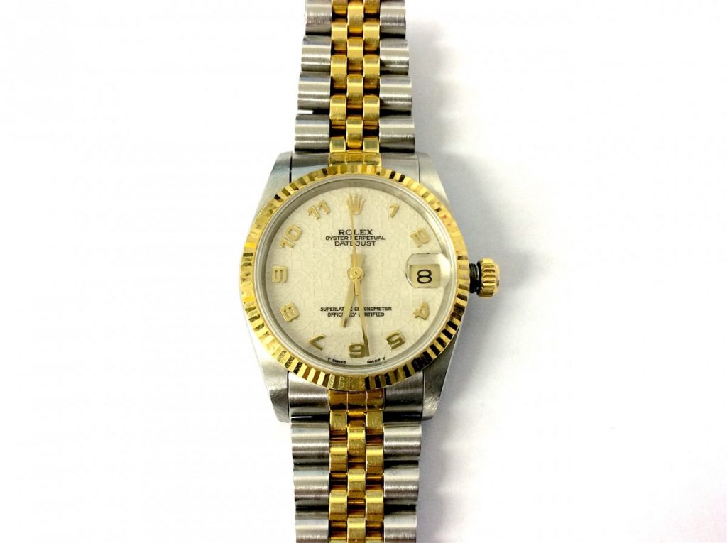 こちらのお時計は、ロレックス三大発明の一つである、日付が午前0時にジャストに一瞬にして切り替わるデイトジャスト機能がそのままモデル名になっている事が有名でございますね。3時側の日付表示が特徴的なお時計です。
