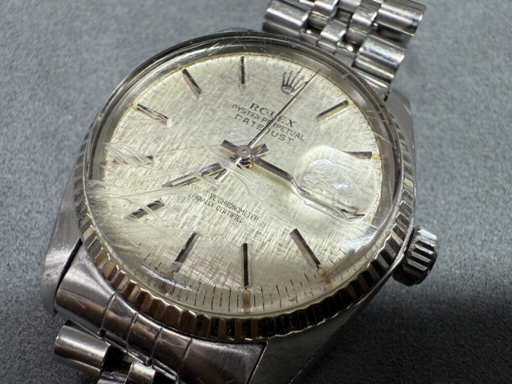 今回お任せいただいたロレックス、デイトジャストは、傷が大きく深いため、