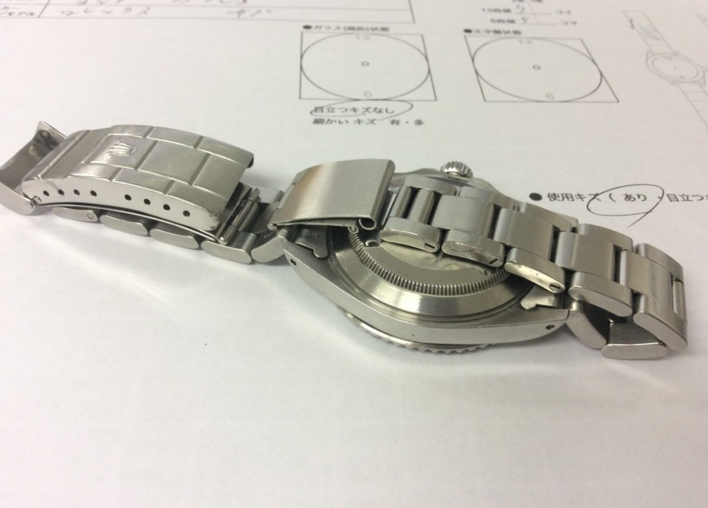 D様にご来店いただいたのは1ヶ月半程前のことでございます。転んでしまったとのことでお持ち込みいただいたロレックス サブマリーナはバックルが変形してしまいこすり傷が全体的に目立ってございました。