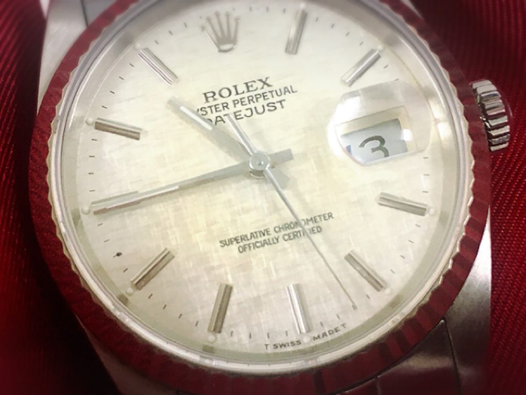 本日はROLEXのDATE JUSTお時計をお預かり致しました。