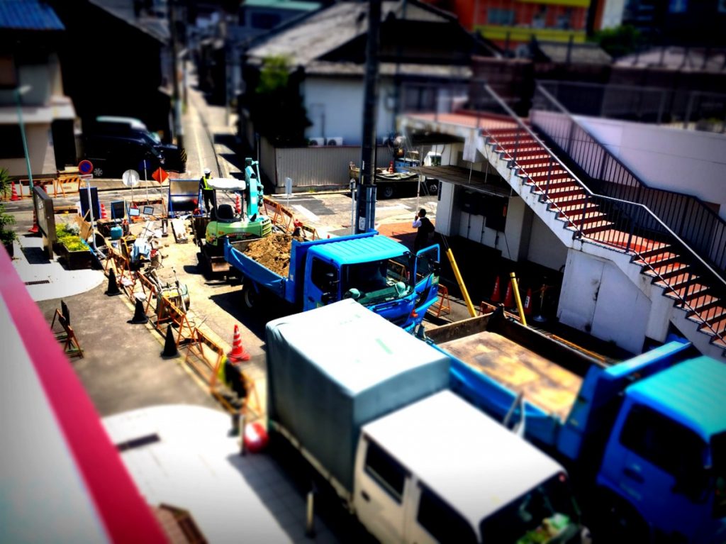 修理工房には駐車場を設けておりませんので、お客様には裏のコインパーキングの利用をお願いしておりますが、時間帯によっては工事により通行できない時間が不定期にあります。私からの対策はお知らせすることしかできませんが、お越しの際はお気をつけてご来店下さいませ。この水道管工事は最近始まったものではありません、私が修理工房でお世話になり始めた頃に始まり今もなお続いております。水道管工事の長引く理由は2つあるそうです、1つは道路を掘り起こし作業をしますが、夕方には埋め戻して夜間通行ができる状態にしなければならないので、工事できる時間の大半は掘って、埋め戻すという作業になります。2つ目は、断水するわけにはいかないので、交換する水道管の前後に工事している間、周辺の水道が使えるよう、仮の水道菅を繋げた上、やっと古い菅の交換作業が行えます。なので長期間の工事になってしまうそうです。少しお話しずれますが、日本の地下に埋められた水道管のほとんどが高度経済成長期に埋められたもので、劣化による破裂事故が多くなってきているそうです、水道管の寿命は40年から持っても50年だそうです。そして1日に交換できる水道管は数メートル…となりますと、工事の時間も手間もわかりますね(汗)、最後にもう一度!周辺道路が水道管工事をしておりますので、コインパーキングご利用のお客様にはご迷惑おかけしますが、お気をつけてご来店下さいませ!。
