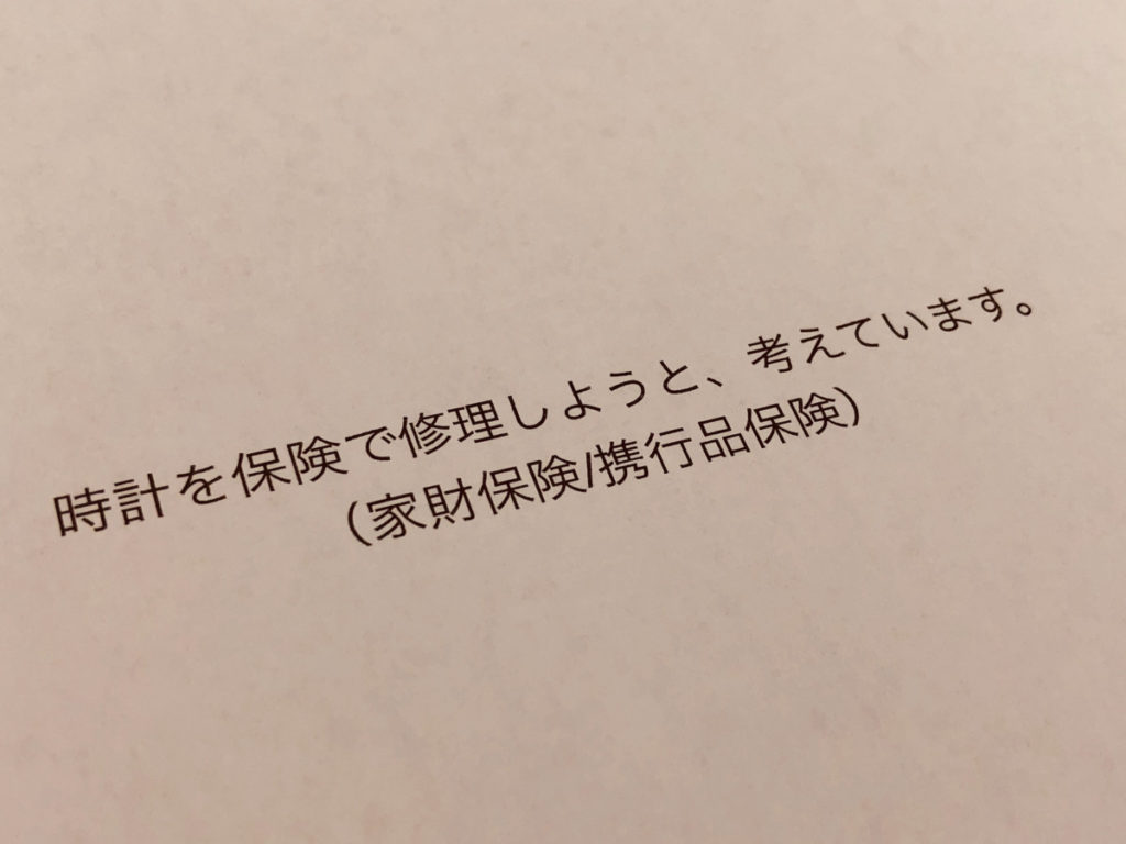 お時計は携行品や家財に含まれますので、修理に保険を適応できる場合がございます。