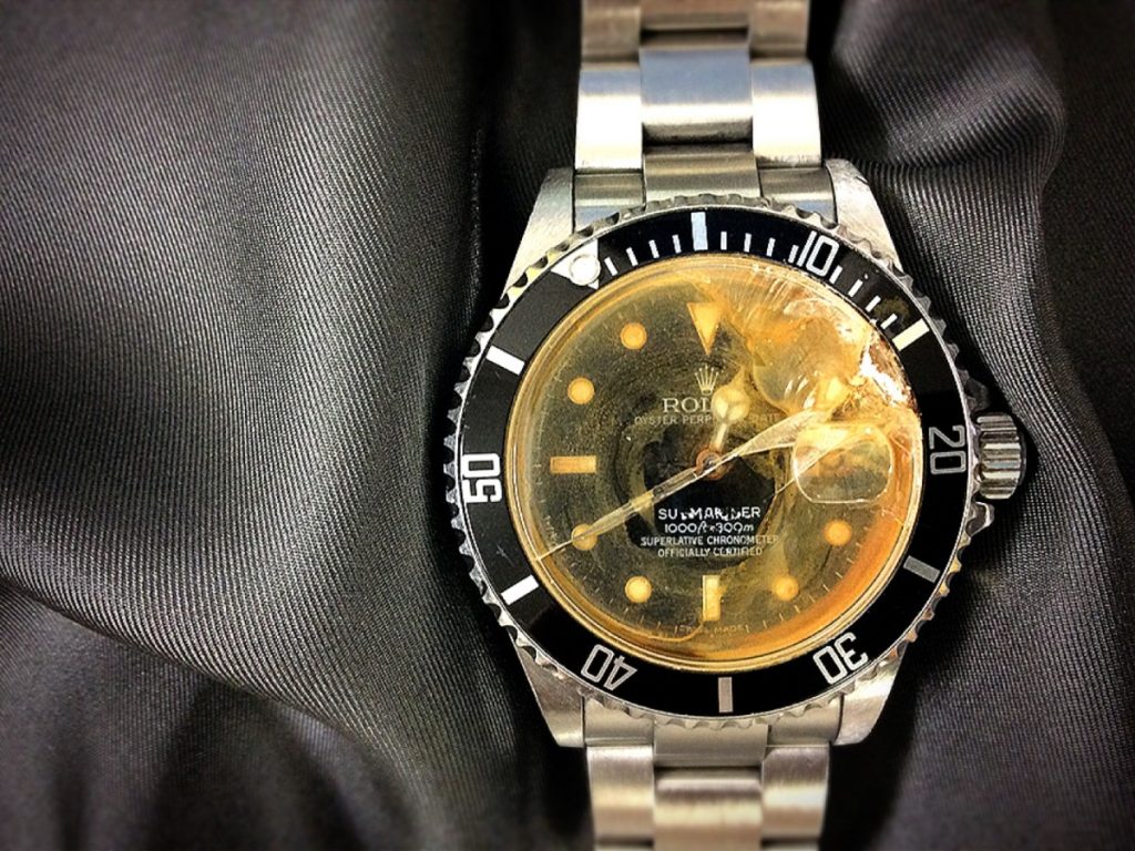 ガラスを覆うほどの、強烈な橙色のサビがひときわ印象深いA様のロレックス。ただのお水が混入したのとは状況が大きく異なります。金属部品の構成体であるお時計にとって、海水がどれほどの影響を与えるかを物語っております。