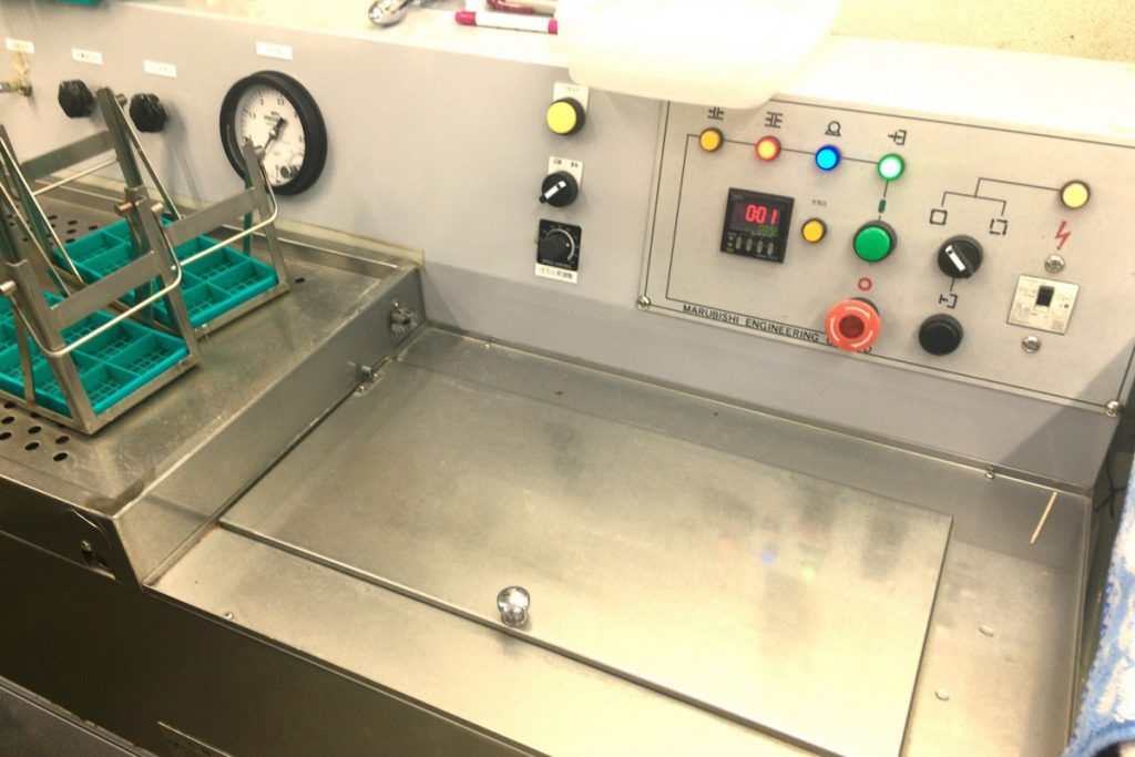 そのとなりには、加温検査機もあり防水検査を行った後にお時計を50度位までに一度加温し、風防内に結露が出ないか確認するとのことで、より適切な修理検査を実施していることを学びました。