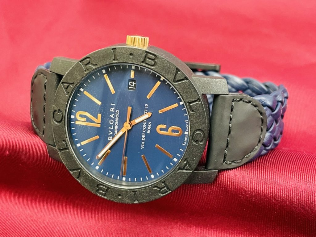 窓口にてお預かりしました、ブルガリのお時計でございます。