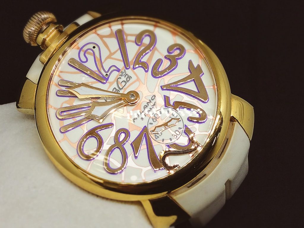 大きなケース本体に、ひと目でそれと分かる文字盤が特徴的なガガ・ミラノのお時計。有名人が愛用していることもあり、ファッション性に富んだデザインに憧れる方も多いですね。
