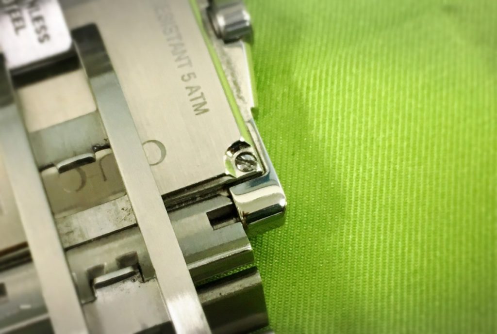 いくつか理由が考えられますが、ひとつの理由としましてお時計を腕にしていると、皮膚から分泌された汗や皮脂がネジ穴に付着して、そのままになると、酸化する事により固まって固着してしまうのでございます。