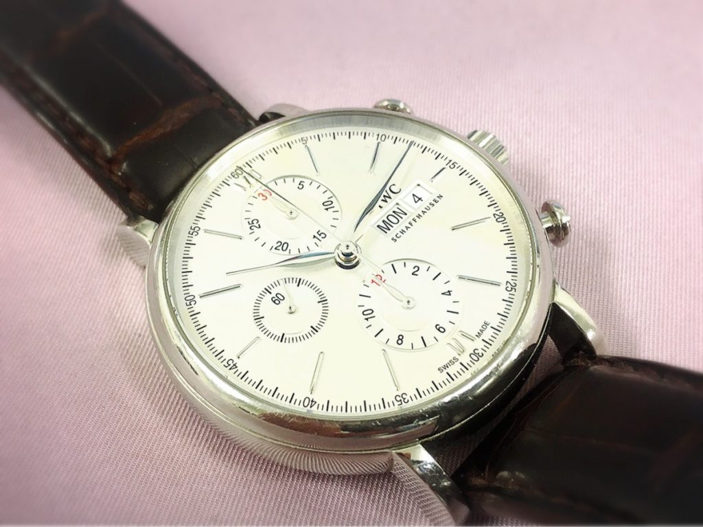 本日はIWCのお時計をお預かりいたしました。5年ほど前に購入し、動作に狂いが出てきてしまったとのことでございます。