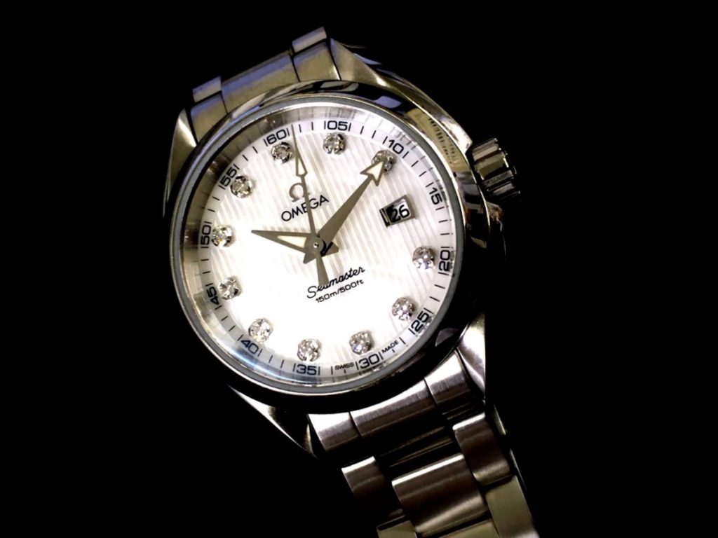 本日お預かりしましたオメガのレディースのシーマスターです。購入から約4年ほどとのことで、お時計の針は4秒運針で動いている状況でございます。お客様は電池交換希望ですので、ムーブメントの消費電流もしっかり測らせていただき交換をご提案いただきます。シーマスターは高い防水性能を備えているお時計ですので合わせて防水検査もご提案できたらと存じます。メンズのシーマスターはベゼルの存在感が大きく、重厚感のある色使い、またデザインでございますが、レディースのシーマスターは透き通るように輝く文字盤と装飾、リューズの形状も女性らしいデザインでメンズとは真逆!お洒落ですね。