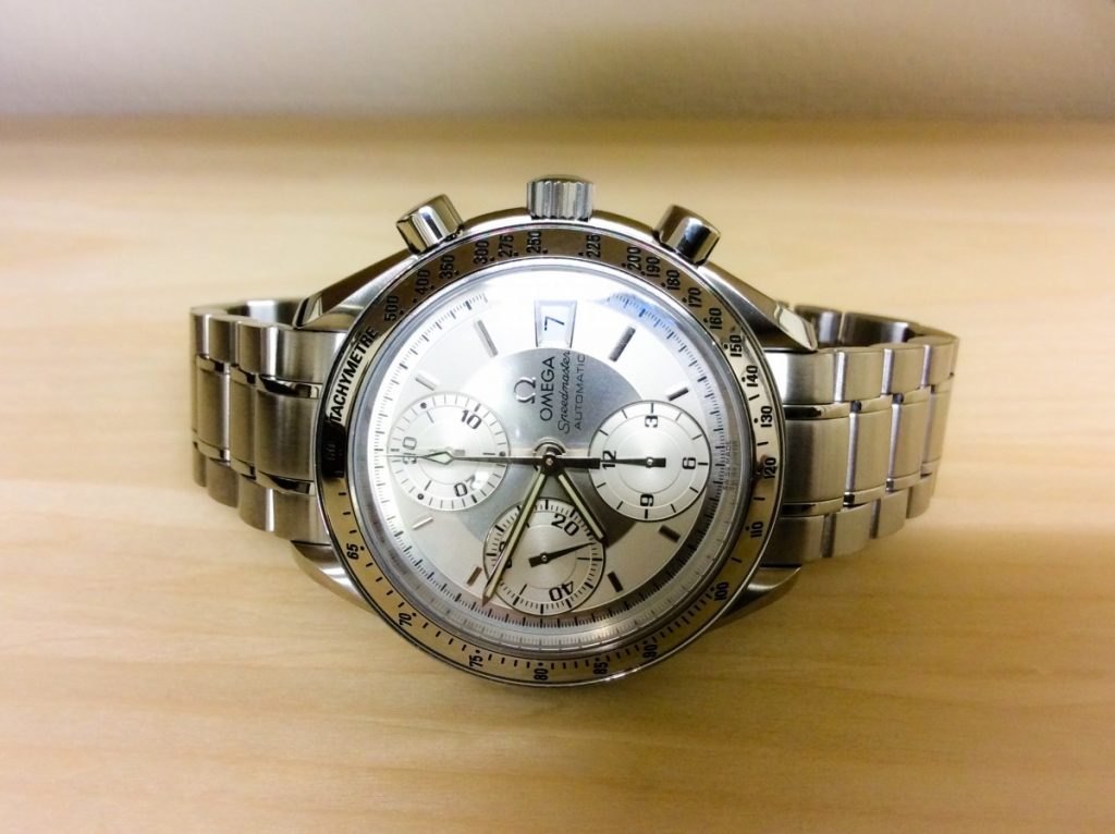 無料梱包パックをご利用いただき、お預かり致しましたのは、オメガのスピードマスター オートマティック。オメガを代表する大人気モデルでございます。スイス公認のクロノメーターに、タキメーターを装備。無反射サファイアガラスで照り返しも無く、太めの蛍光針は夜間でもとても見やすいです。シルバーで統一されたシャープなデザインは、シーンを選ばず万能で素敵なお時計でございます。