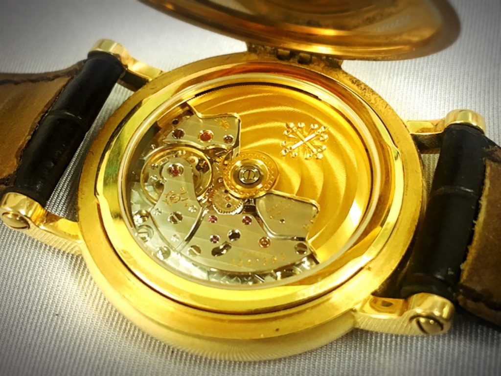 世界三大時計と言われる「オーデマ・ピゲ」「ヴァシュロン・コンスタンタン」「パテック・フィリップ」今回はパテック・フィリップのお時計をお預かりいたしました。パテック・フィリップは創立者「アントワーヌ・ノルベール・ド・パテック」と「ジャン・アドリアン・フィリック」によりその礎が築かれましたので、二人の名前からとって「パテック・フィリップ」となったのでございます。遡ること1839年、約180年前でございます。シンプルでありながら計算しつくされたスキのないデザインは、世界中のセレブレティに愛されているそうです。今回お預かりしたお時計も、一見なんの変哲もないシンプルな時計のように見えて、実は裏ぶたが開閉式になっており、内部のムーブメント見る事ができる仕組みにになっており、内部部品の美しい表面の仕上げや刻印を見てとれます。一定に動くテンプの動きをいつまでも眺めていたくなり、お時計(裏面)を見ながらも時間の経つのを忘れてしまいそうでございます。ちなみにご依頼の内容は、ベルト交換とメンテナンスのオーバーホールでございます。この度はご用命いただきありがとうございました。