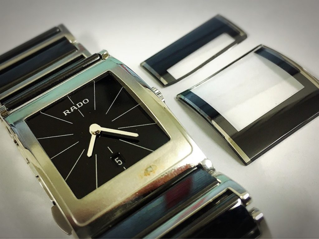 ガラスにヒビが入って外れてしまったRADOのお時計をお預かりいたしました。
