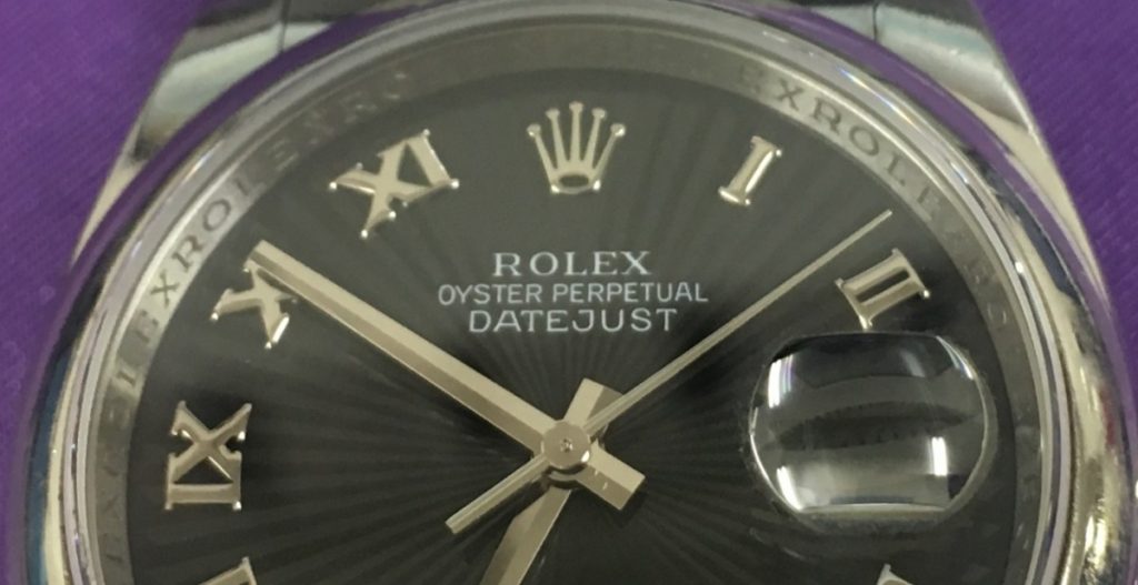 お預かり頂いたロレックスのお時計は「オイスターパーペチュアル デイトジャスト」と文字盤に書かれております。オイスターとは「牡蠣」の事でございますが、お時計の素材に牡蠣が使われているわけではなく、ロレックスが開発した1つの金属塊から時計のケースを削り出す手法で作られたものが「オイスターケース」と呼ばれており、“牡蠣の殻のように堅牢な”という意味からオイスターケース名付けられております。元々はオイスターウォッチカンパニーが開発したものだそうです。それは今から約90年前の事でございまして、今でもその技術は使用されて文字盤にはオイスターの文字が書かれているのでございます。