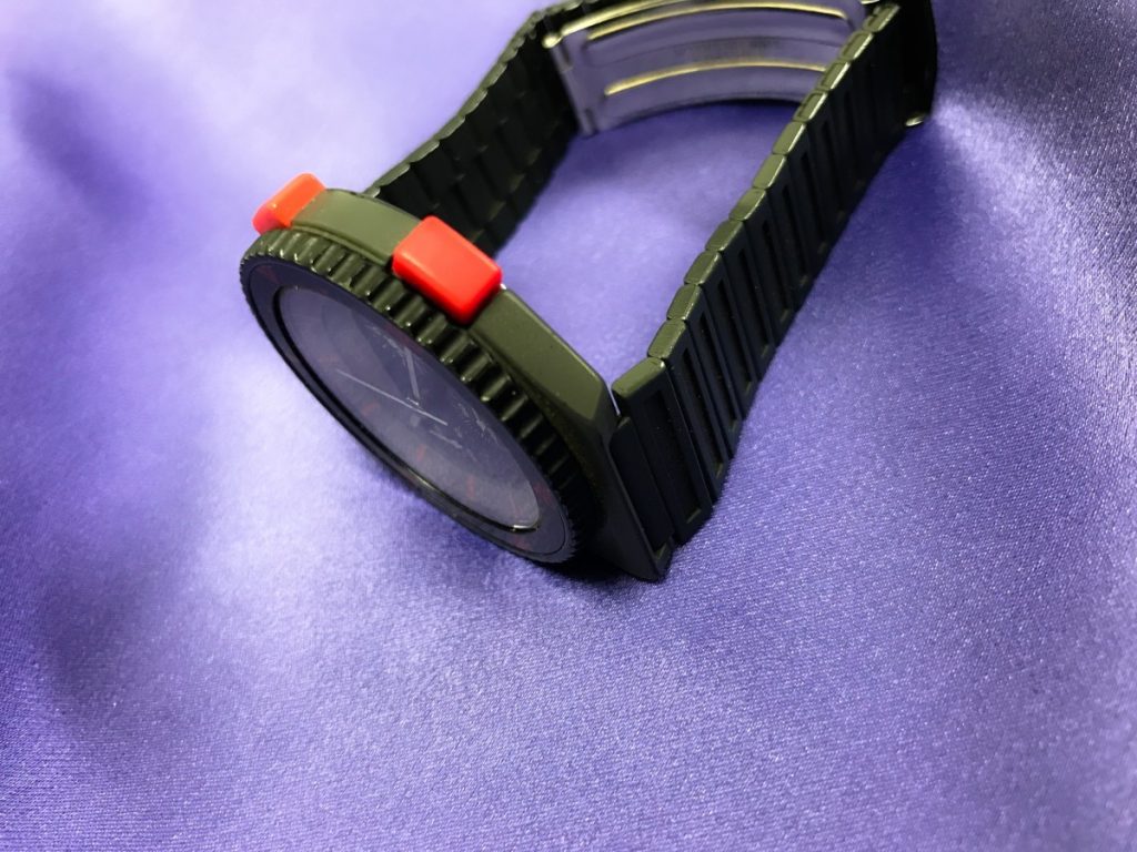 仮付けをした状態が本日の写真でございますが、いかがでしょうか、初代ジウジアーロのお時計のプッシュボタンは、