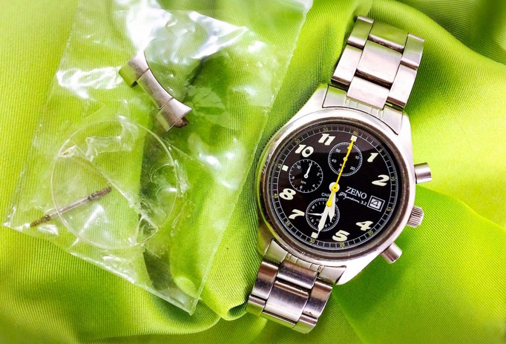 さて、本日は ZENO-WATCHのガラス交換、電池交換、弓カン取付、バネ棒取付修理をご紹介させていただきます。どうぞ宜しくお願い致します。